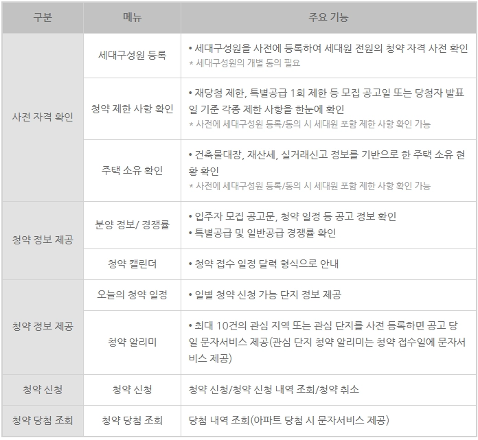 청약홈 주요 서비스